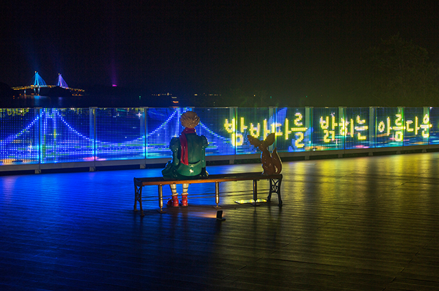 거가대교의 야경과 함께 화려한 미디어아트를 감상해보세요. 어린왕자 포토존에서 사진은 필수!